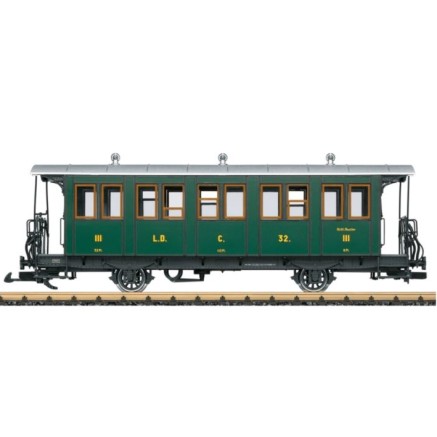 Personenwagen der Landquart-Davos-Bahn wie er in den Anfangsjahren zum Einsatz kam. Der Wagen C.32 blieb bis heute erhalten und wurde aufwendig in den Zustand der L. D. zurückversetzt.