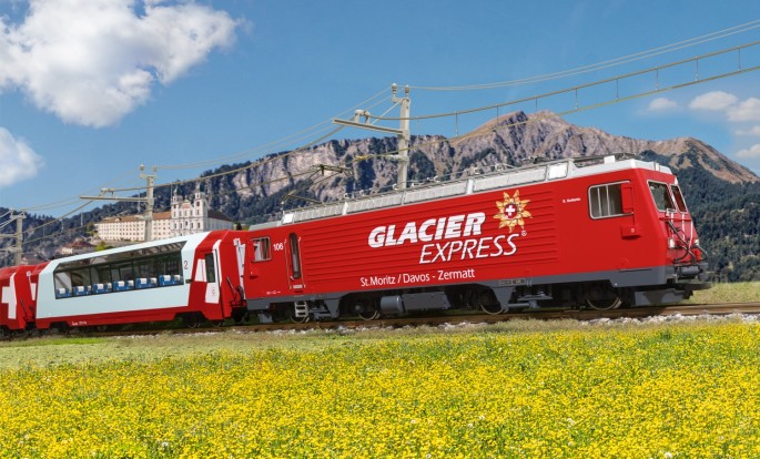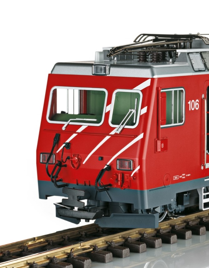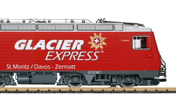 Als komplette Neukonstruktion rollt die Zahnrad-Lokomotive der Baureihe HGe 4/4 II der Matterhorn-Gotthard-Bahn (MGB) ins LGB Programm. Lokomotiven dieser Baureihe ziehen (u.A.) den weltbekannten Glacier-Express ab Disentis/Mustér bis nach Zermatt. Somit kann nun auch auf der LGB Anlage der komplette Zuglauf des Glacier-Express nachgestellt werden.