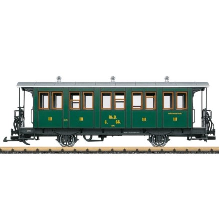 Personenwagen der Rhätischen Bahn wie er ab 1895 zum Einsatz kam. Der Wagen C.66 blieb ebenfalls bis heute erhalten und wurde aufwendig in den Zustand der frühen RhB zurückversetzt. Das Modell ist eine unveränderte Wiederauflage.