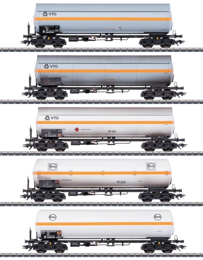Passende Wagen zur 194 178 könnten diese fünf Gaskesselwagen sein.