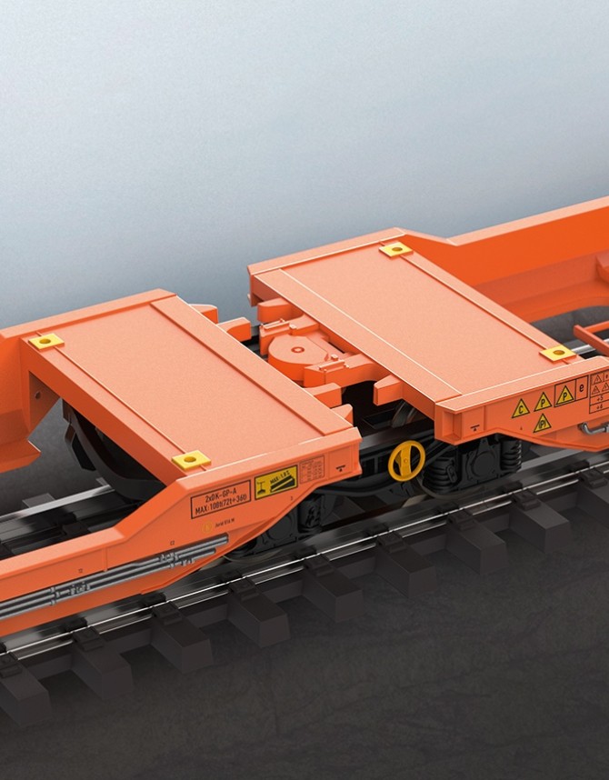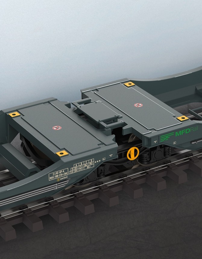 Detailansicht auf das Mitteldrehgestell eines MFD-Wagens. Copyright: MFD Rail GmbH